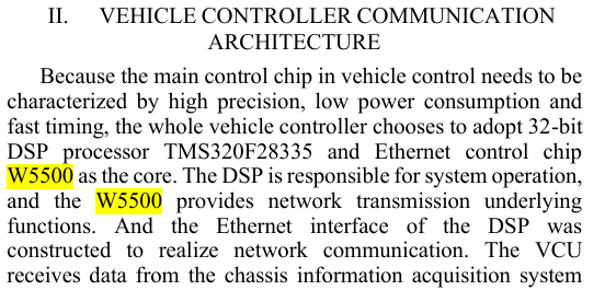 2장 아키텍쳐에서는 자동차 중앙 MCU 와 VCU 간의 통신을 이더넷으로 하는 것을 W5500 이 담당한다.