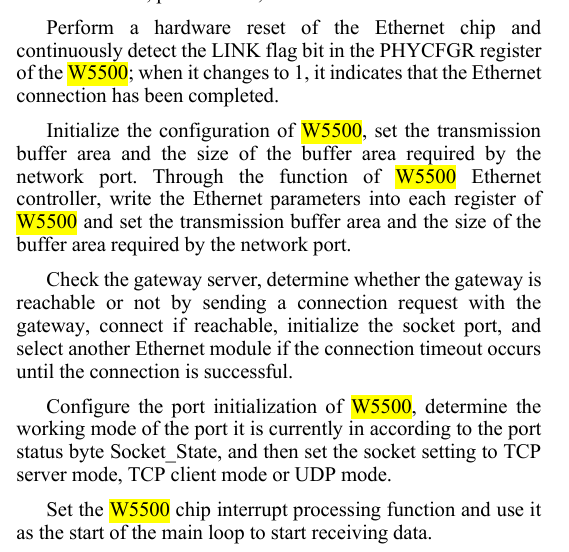 The choice of the W5500 Ethernet chip is critical for the following reasons: