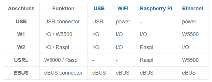 USB, Wi-Fi 및 Raspberry Pi를 통한 연결은 항상 가능합니다. 이더넷 연결을 위해서는 W5500 모듈이 추가로 필요합니다.