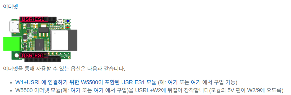 - 추가 모듈 USR-ES1 또는 기타 W5500 모듈을 사용한 이더넷