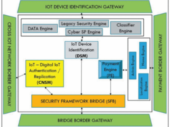 For example, the DSM verifies the legitimacy of an IoT device by examining its RF wireless signal characteristics and GPS-based location information before initiating a transaction.