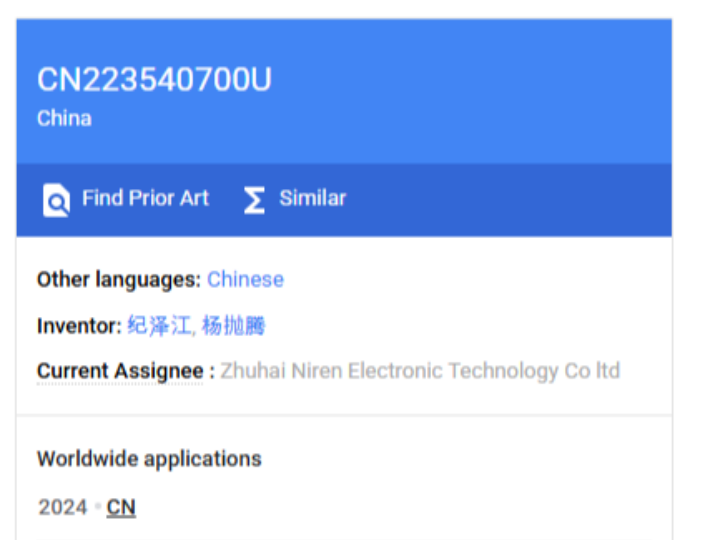 주하이 니렌 전기기술 유한공사 (Zhuhai Niren Electronic Technology Co ltd)