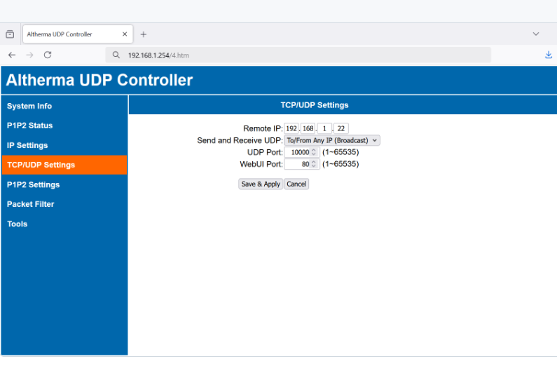 Arduino Altherma UDP Controller