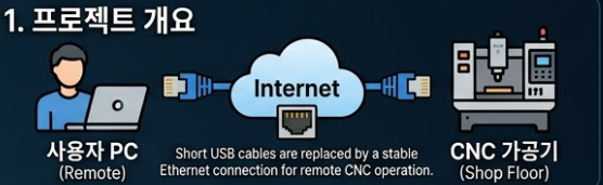일반적인 CNC 조각기나 3D 프린터는 짧은 USB 케이블로 PC와 직접 연결됩니다. 하지만 실제 가공 환경은 분진이 많고 소음이 심해, 작업자가 기계 바로 옆에서 PC를 조작하기 어려운 경우가 많습니다.