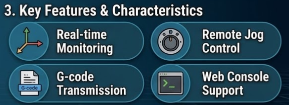 - Real-time Monitoring: Check Work Position (WPos) and Machine Position (MPos) in real-time over the network.