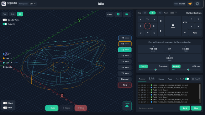 To overcome these limitations, ncSender utilizes Ethernet communication. It is an open-source G-code sender that allows users to remotely control and monitor their CNC machines from anywhere with a web browser.