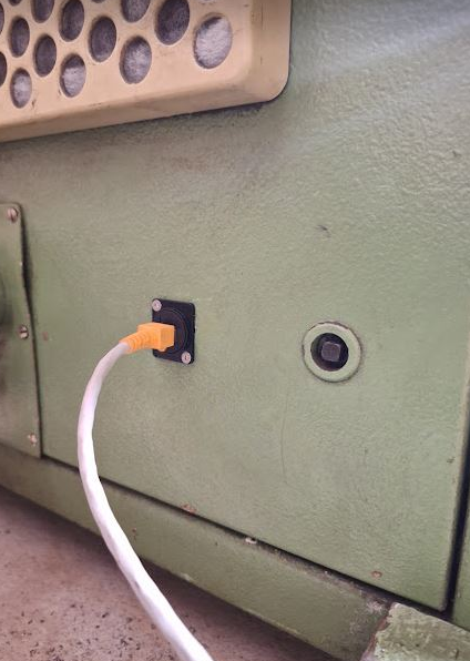 캐비닛에 CAT6 패널마운트 커넥터를 달아 내부의 W5500 + ESP32 보드에 직접 연결한다.