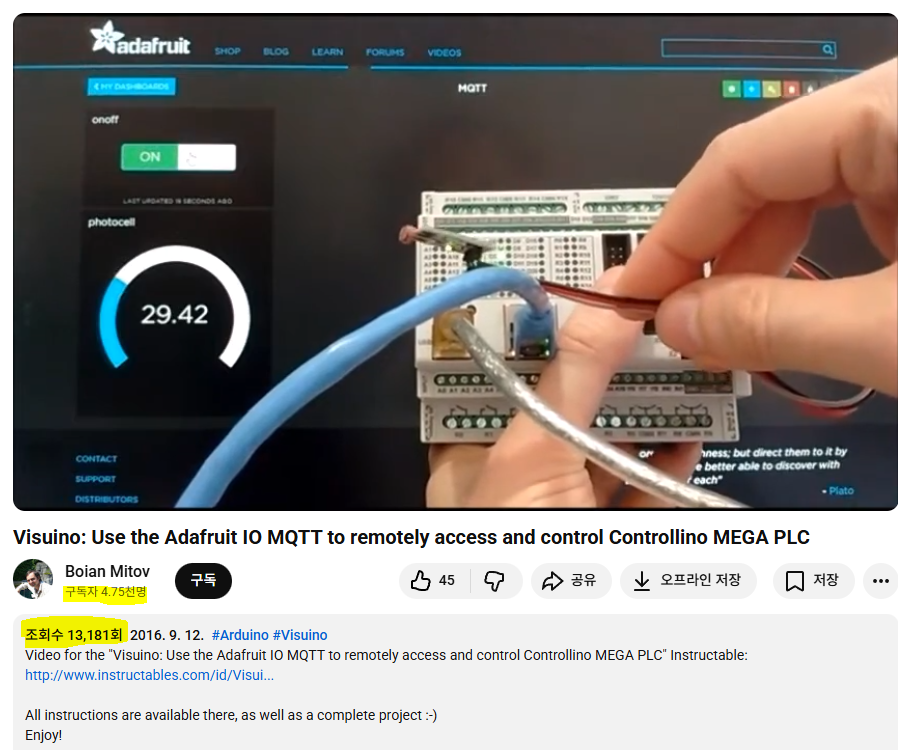 Visuino fully supports Controllino, and the combination of industrial-grade hardware with visual programming enables rapid development of complex automation projects. After adding MQTT support to Visuino, the author created a tutorial using Controllino and Adafruit IO as the MQTT server. Users must create an Adafruit IO account and set up two MQTT feeds—“onoff” and “photocell.” The only recommended change is to set the “photocell” feed’s maximum value to 100 instead of 1024.