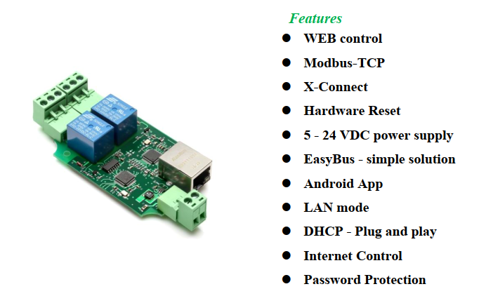 A: The W5500 is a TOE (TCP/IP Offload Engine) chip with a built-in hardware TCP/IP stack. Since TCP-based protocols such as HTTP, Modbus-TCP, and EasyBus do not need to be processed directly by the MCU, CPU load is reduced and latency remains stable. It is well suited for devices that must handle both relay control and network processing simultaneously.