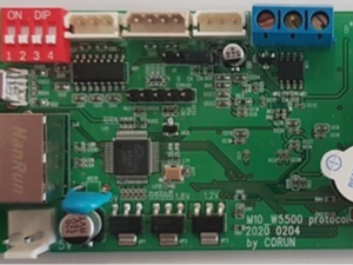 The system utilizes the WIZnet W5500 as its network interface. The controller receives display data from PC or mobile applications via LAN and reliably transmits it to the LED modules. By offloading TCP/IP processing to the W5500 hardware, the system maintains predictable latency and stable communication—essential for public and industrial display environments that require continuous, long-term operation.