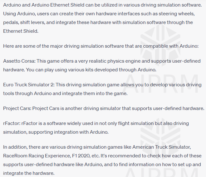 Upon researching, I found that while many projects use Arduino, Ethernet Shields are not commonly used. When I asked whether vehicle simulations also used this setup, I received the following answer: