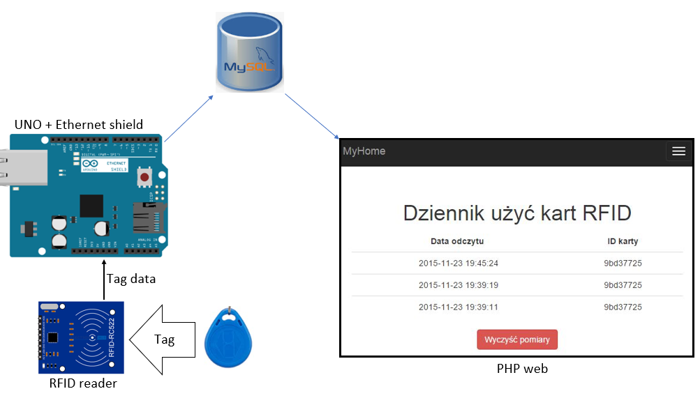 This project show how to build a log of using RFID cards with Arduino Uno, Ethernet Shield and RC522 RFID reader.