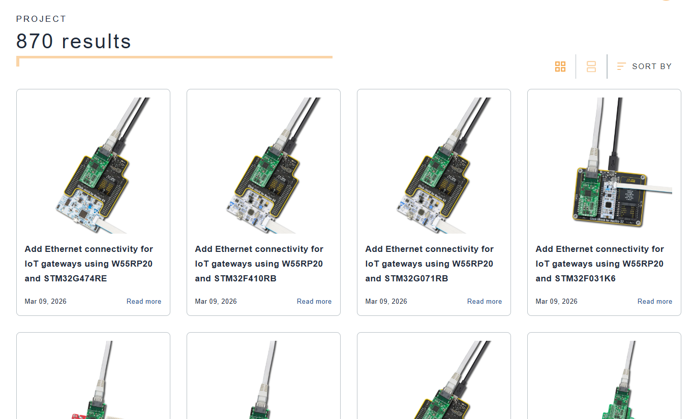 Along with the hardware release, MIKROE created an extensive set of 870 guide projects demonstrating how to build IoT gateways using different MCUs and development platforms.