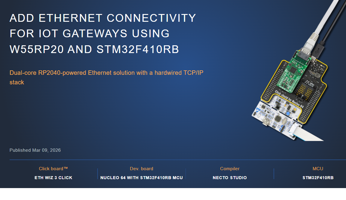 MIKROE의 W55RP20 기반 ETH WIZ 3 Click – 870개의 IoT Gateway 레퍼런스 프로젝트