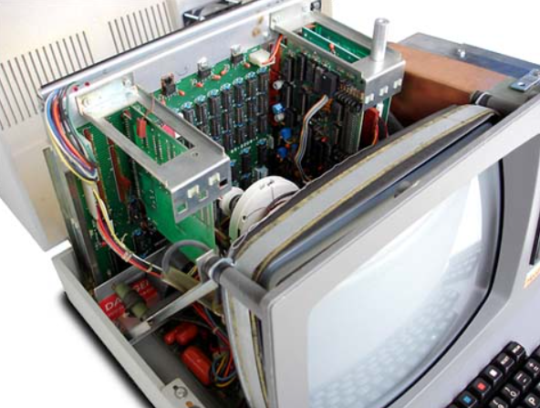 It combined a keyboard, CRT monitor, and floppy drive into a single enclosure.
