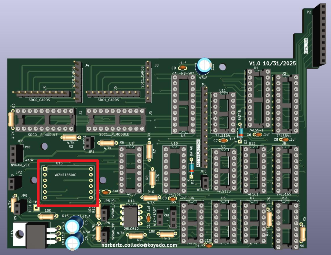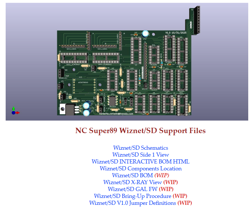 The NC-Super89 Wiznet/SD board integrates the W5500 Ethernet controller, making it possible to enable Ethernet communication in the H89 environment.
