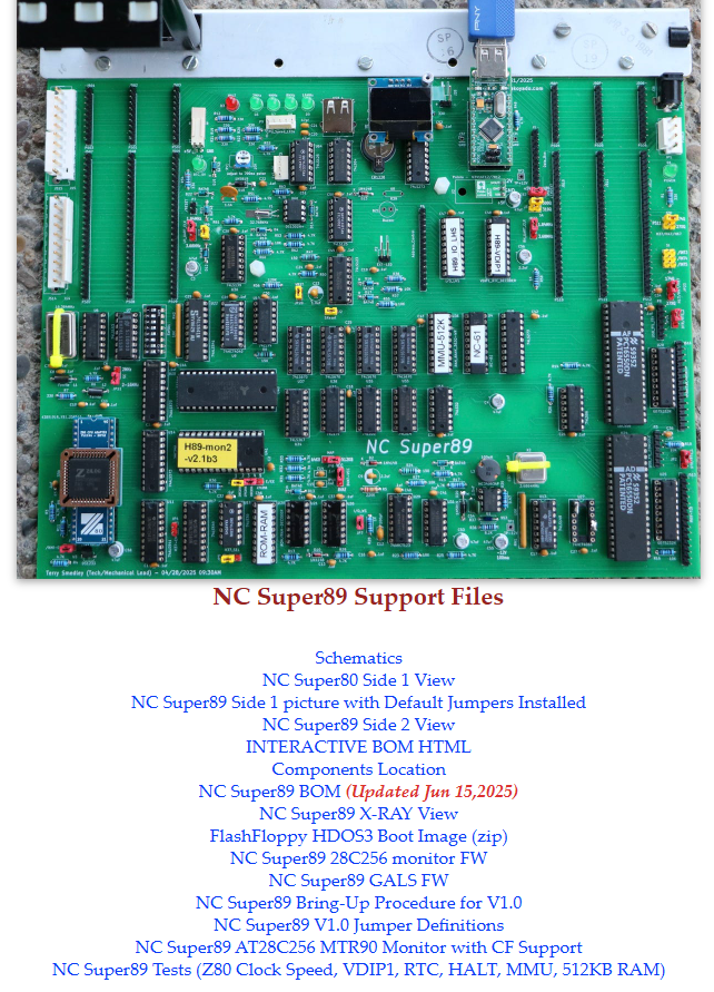 The NC-Super89 board was developed to recreate the H89 architecture with modern FPGA/MCU hardware, enabling classic software to run again.