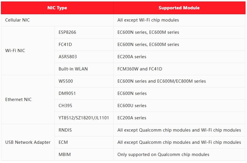 CH395 is a TCP + MAC + PHY chip and is only supported on the EC600N module series.