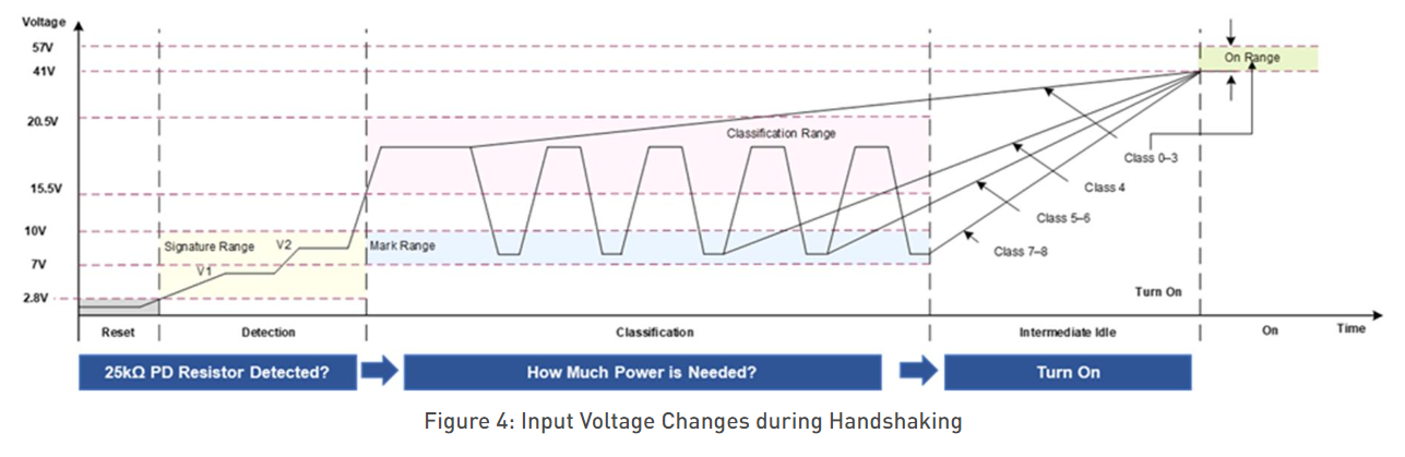 PoE relies on the PSE handshaking with the PD to determine how much power it should send once it knows the PD is connected.
