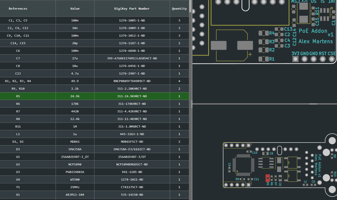 Initial PD detection indicates that it is connected with a PD resistor value of 25k ohm, which appears to be a PoE module that supports PD detection, as the BOM list posted by the author has 24.4k ohm.
