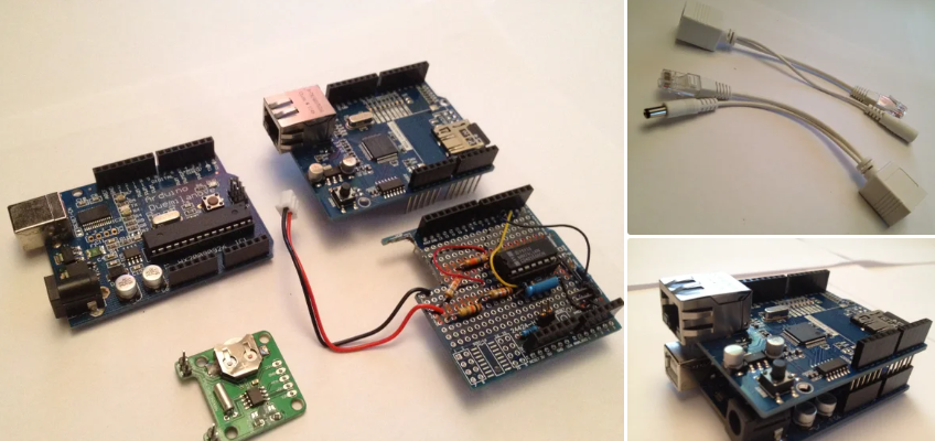 아두이노는 DS1307 실시간 시계(RTC) 모듈과 WIZnet W5100/W5500 기반 이더넷 실드를 조합하여, 각 펄스 발생 시점(사용량)을 기록합니다.