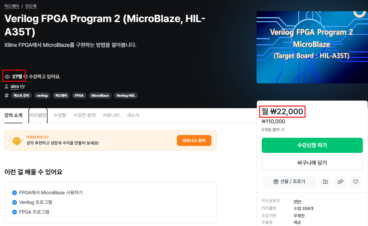 사용 보드는 강의를 위해 직접 설계한 HIL-A35T 보드이고, 커리큘럼을 보면 흐름이 이렇게 흘러갑니다: