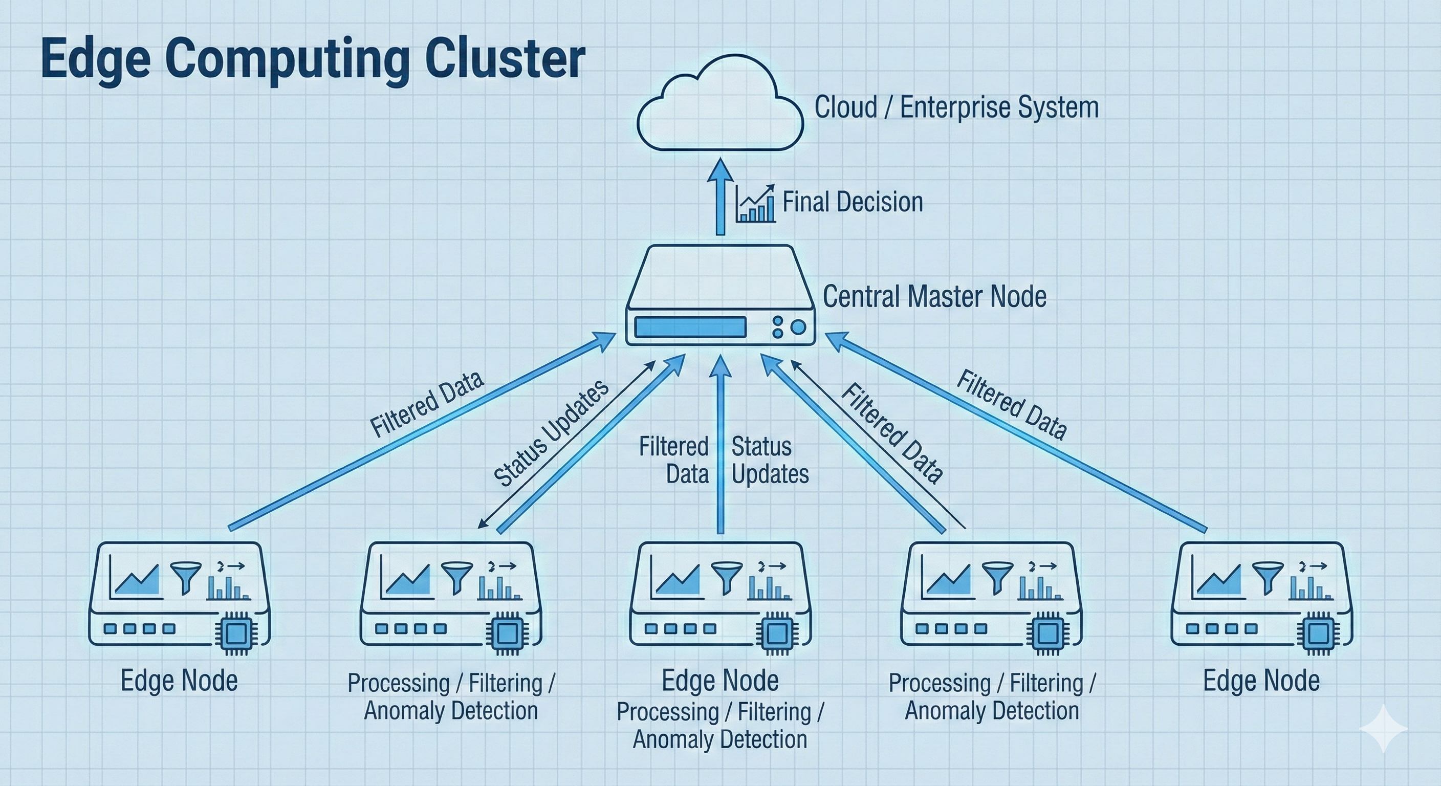 여러 엣지 노드가 연산·필터링·이상 감지를 하고