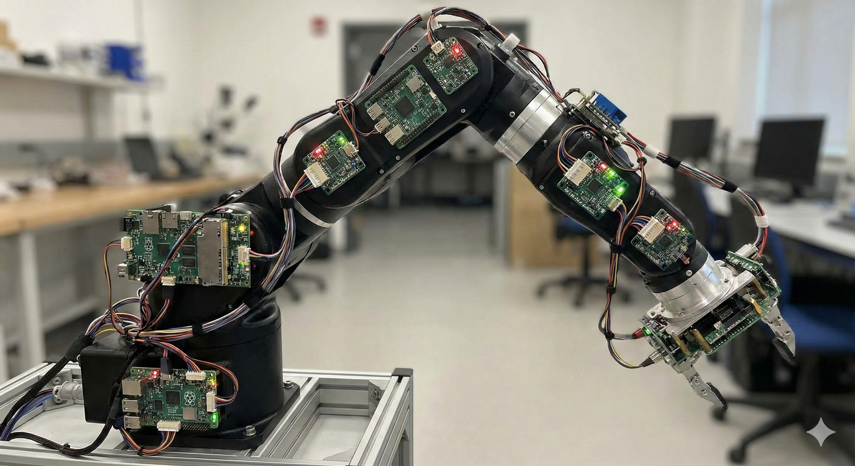 중앙 집중 방식 대신, 로봇의 각 부위(노드)에서 독립적으로 데이터를 수집하고 처리하여 효율성과 반응 속도를 높인 시스템입.