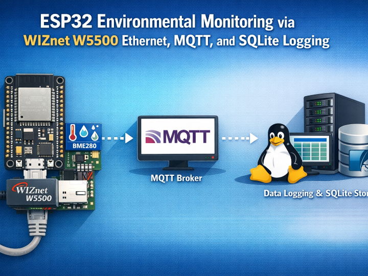 A compact reference design that demonstrates an embedded-to-server telemetry chain: BME280 sensing on ESP32, WIZnet W5500 wired Ethernet, MQTT decoupling, and SQLite persistence with simple maintenance automation.
