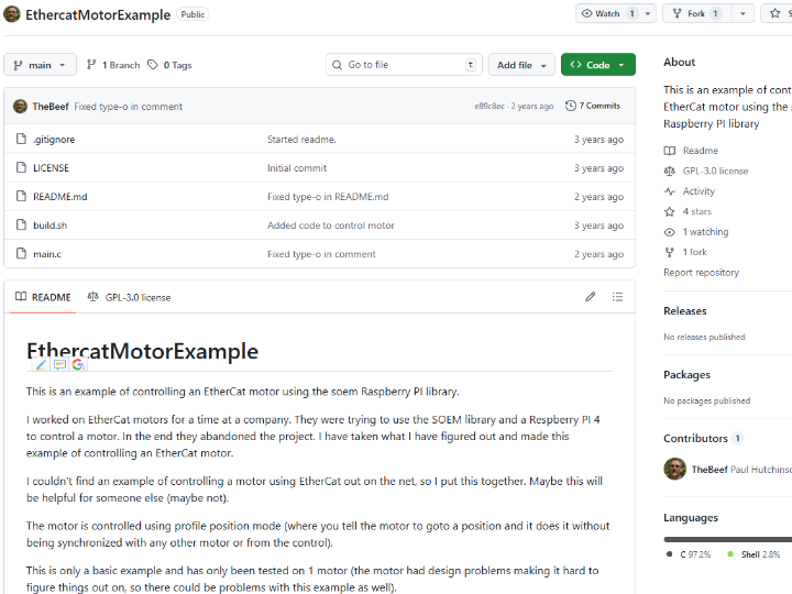 This repository is best read as a pragmatic “first successful motion” reference: it shows the end-to-end plumbing from SPI-W5500 NIC configuration to EtherCAT OP state and a minimal CiA 402 Profile Position command sequence. Its boundaries are explicit: single-motor testing, non-synchronized motion strategy, and environment-specific setup steps.