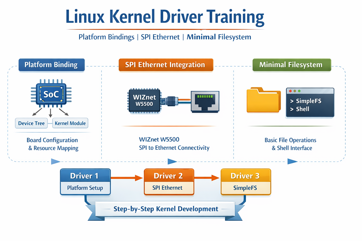 Linux Kernel Driver Training Across Platform, SPI Ethernet, and a Minimal Filesystem