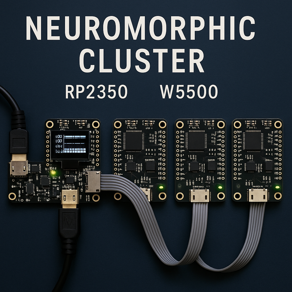 - A fully defined neuromorphic cluster architecture on commodity RP2350B hardware