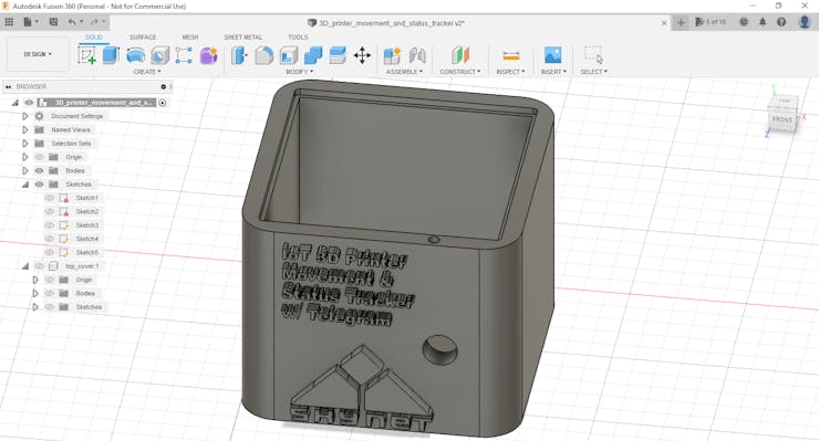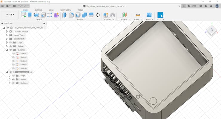 I designed the main case and its removable top cover in Autodesk Fusion 360. You can download their STL files below.