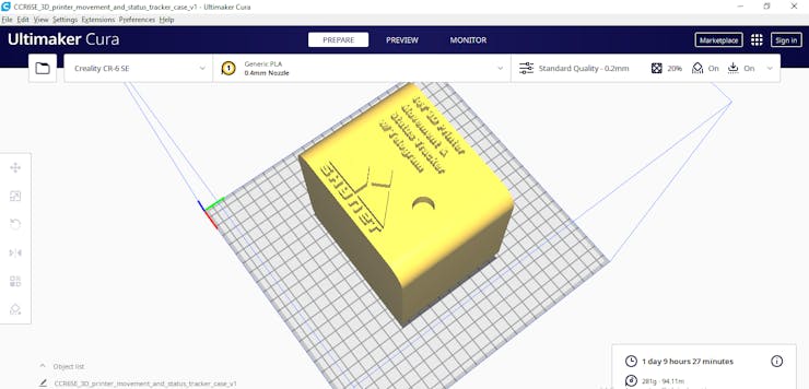Then, I sliced all 3D models (STL files) in Ultimaker Cura.