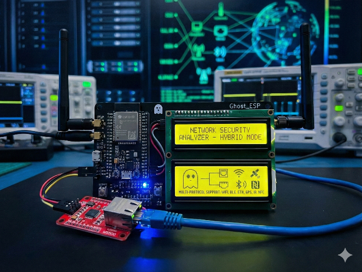Ghost_ESP는 ESP32의 무선 기동성과 W5500의 유선 안정성을 결합한 하이브리드 보안 도구입니다. 저비용으로 전문적인 네트워크 분석 환경을 구축하려는 보안 전문가나 연구자들에게 매우 효율적인 솔루션을 제공합니다.