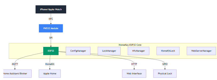 | 목적 | ESP32 + PN532 조합만으로 Apple Home Key(NFC) 기능을 DIY 잠금장치에 구현하기 위한 오픈소스 펌웨어 |
