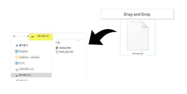 1. The drive will be called RPI-RP2 on all RP2040 boards. Download the UF2(firmware.uf2) file from the link below and put the file in Pico.