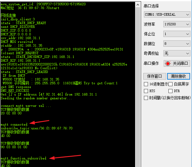5. Compile and download to the development board (this can be done by checking the development board's serial port log).