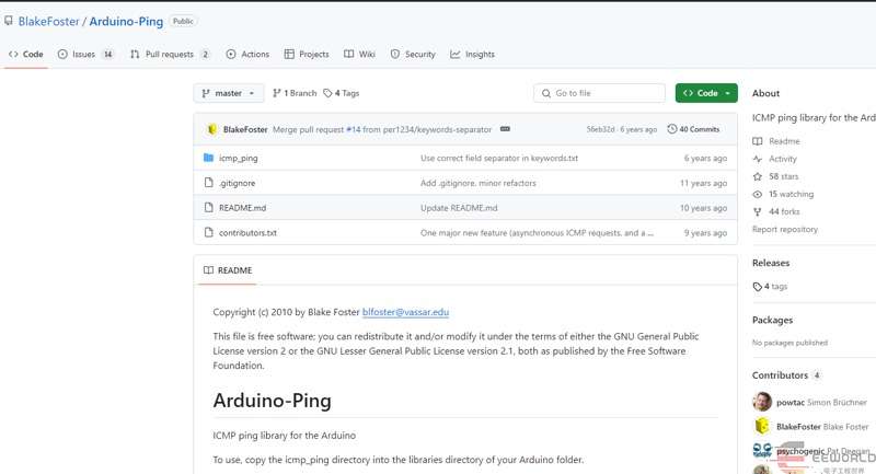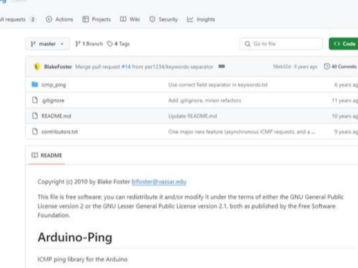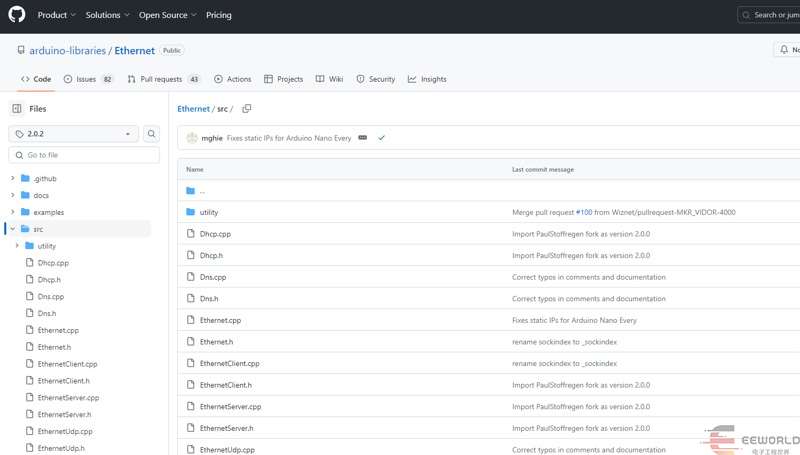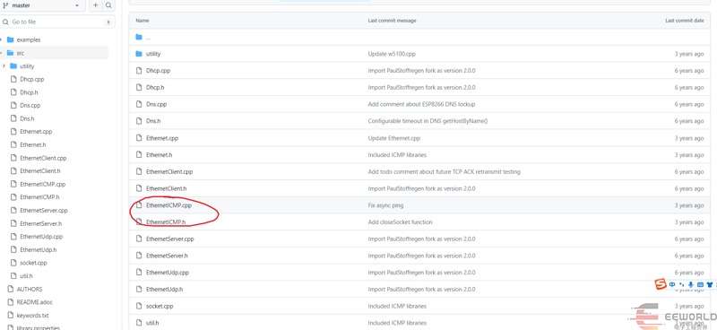 Initialization itself has routines; the main issue is library selection. We need to be careful when choosing libraries for Arduino.  Initially, you might encounter a Ping library like this, but you'll need to modify it manually, which is quite troublesome. A user provided a ping library at: https://github.com/masterx1981/Ethernet/tree/master/  However, the official documentation currently lists this library as version 2.02.
