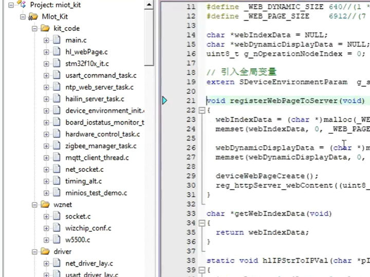 This project explains the network architecture and source code structure of the .mkit-web HTTP service used in the MIoTKit ecosystem. The system uses a WIZnet W5500 Ethernet controller to provide stable TCP/IP networking for an embedded device. Through the .mkit-web service, the device can expose HTTP APIs, enabling configuration, monitoring, and control from a browser or external applications in Industrial IoT deployments.
