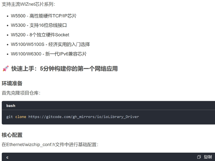 The CSDN article is essentially a general introduction to ioLibrary_Driver, not a verified W6300 hardware build. It discusses socket-style APIs, basic configuration, and application protocols, but it does not present a concrete W6300 target board, a verifiable firmware tree, or board-specific code that can be tied to an actual maker project.