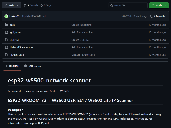 esp32-w5500-network-scanner esp32-w5500-network-scanner COMPONENTS Hardware components WIZnet - W5500 x 1 Espressif - ESP32 x 1 PROJECT DESCRIPTION Documents Github Code Comments Write