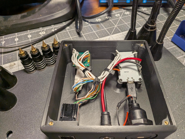 That protected the laptop, but it made the power button hard to reach. This little box is the result: a simple external wired Wake-on-LAN (WoL) button that lets her turn the computer on without having to lean and risk a fall.