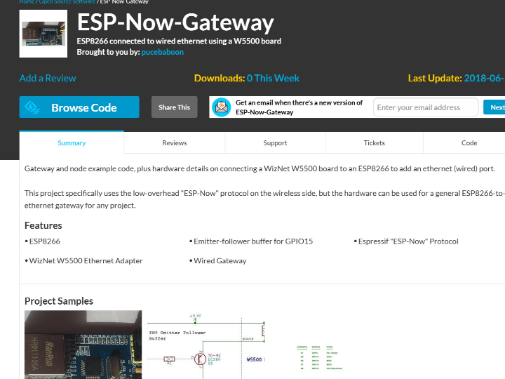 ESP-Now-Gateway ESP8266 connected to wired ethernet using a W5500 board COMPONENTS PROJECT DESCRIPTION Documents Comments Write
