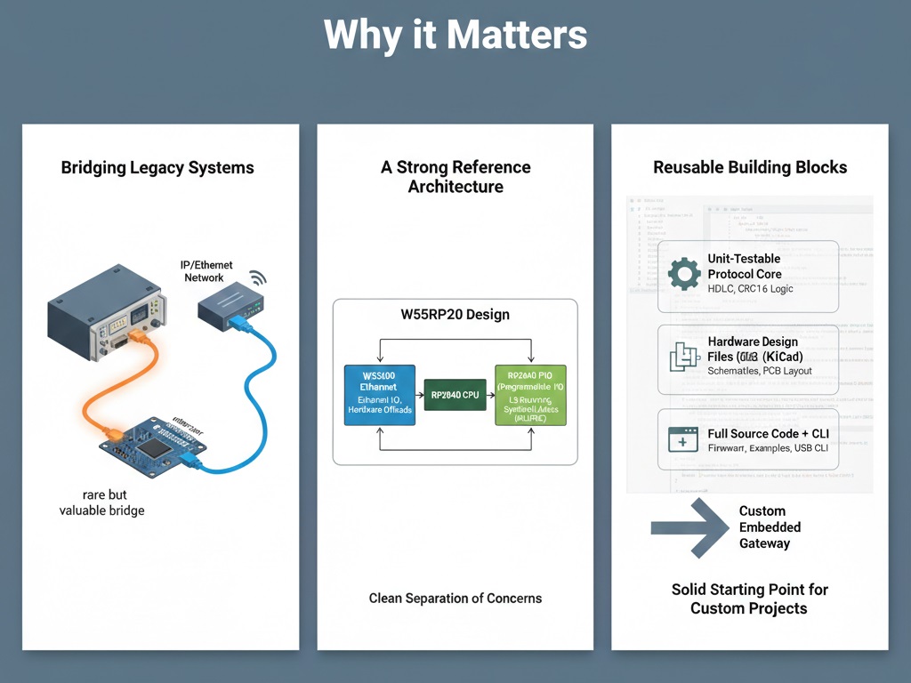 That separation makes the approach reusable for other embedded networking gateways and “legacy-to-IP” adapters.