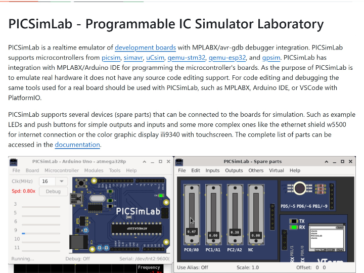 PICSimLab - Programmable IC Simulator Laboratory PICSimLab is a realtime emulator of development boards with MPLABX/avr-gdb debugger integration. COMPONENTS PROJECT DESCRIPTION Documents Comments Write