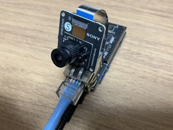 This tutorial combines a Sony Spresense Main Board, HDR Camera Board, and a W5500 Ethernet add-on to build a minimal web camera that serves a single JPEG snapshot to any browser. The sketch initializes camera and Ethernet, reads a MAC address from the add-on board’s EEPROM, brings the link up, and returns a Content-Type: image/jpeg response from an HTTP server bound to 192.168.1.240. (elchika)