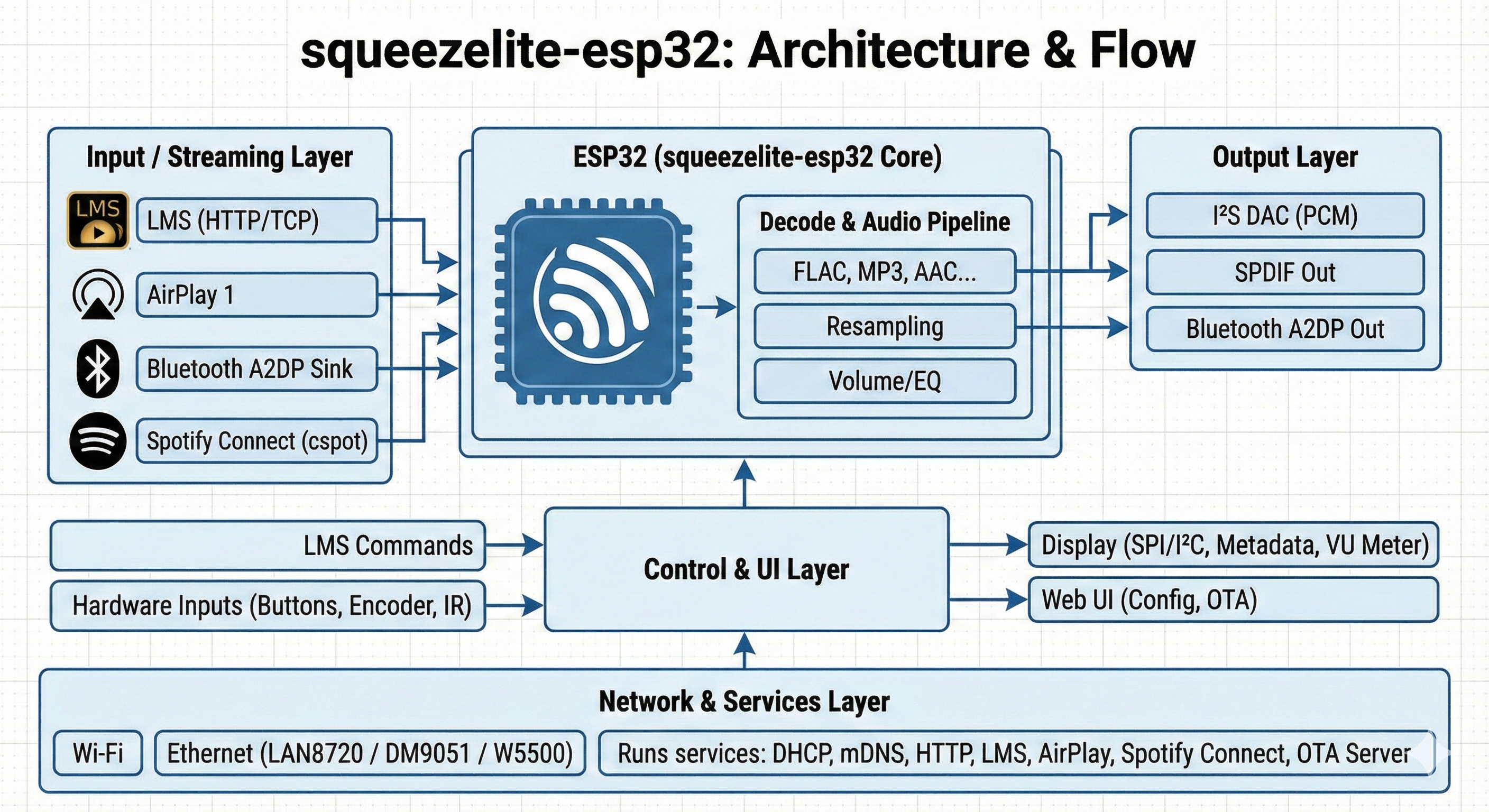 → 그래서 이 프로젝트는 LMS/Squeezebox 생태계에서 “ESP32 기반 표준 플레이어”에 가까운 포지션을 차지하고 있습니다.