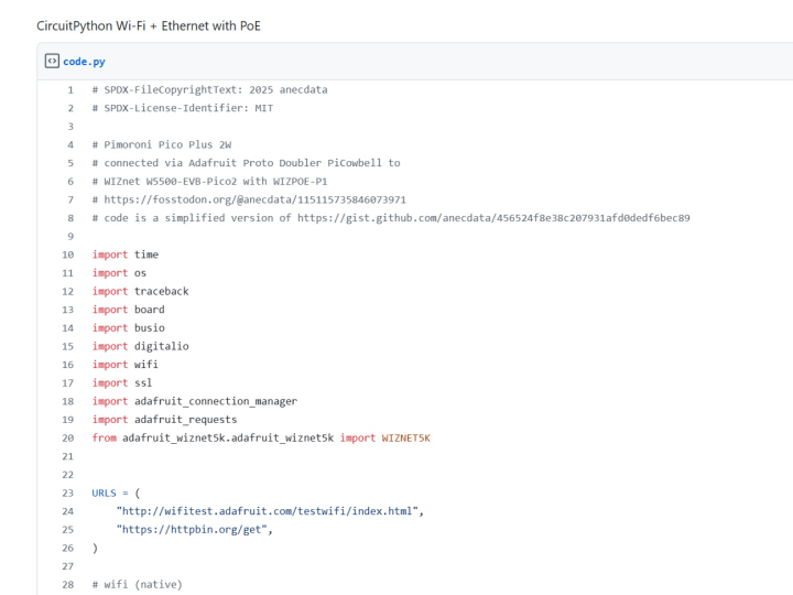 CircuitPython WiFi Ethernet with PoE CircuitPython WiFi Ethernet with PoE COMPONENTS PROJECT DESCRIPTION Documents Comments Write