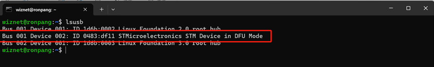 - Identify the USB port corresponding to the W55MH32 device. The bus ID will be displayed (example: 4-4).